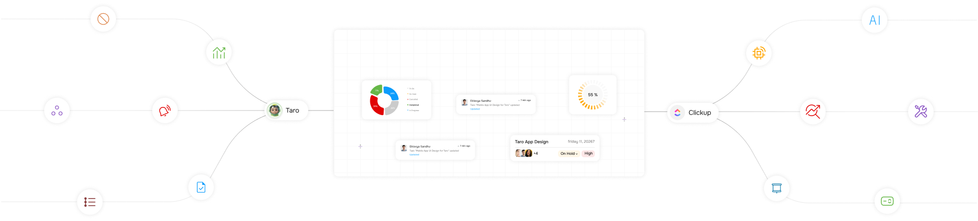 Yes. TARO covers every major ClickUp workflow and extends it with predictive AI, gamification, and project governance.
