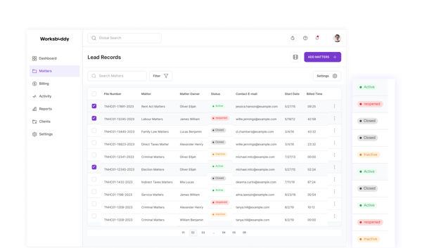 A complete command center for every lead in your pipeline from first touch to closed deal. Every field, filter, and bulk action you need, without the bloat.