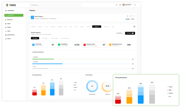 Deal won fires a new onboarding project in Taro tasks auto-assigned to the CS team