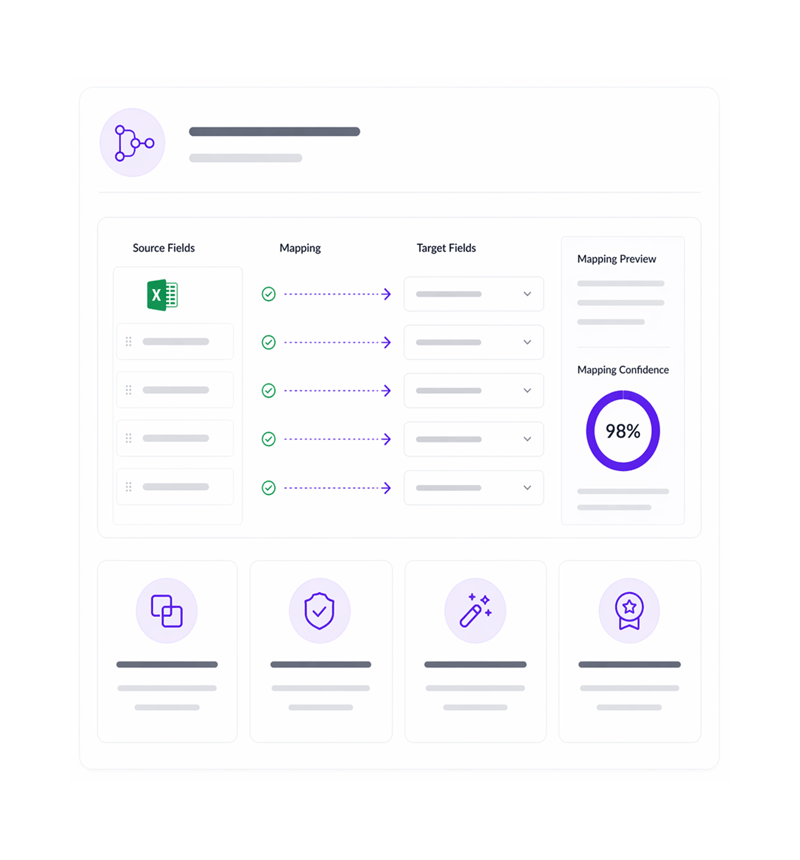 Configure smart field mapping and validation rules with automatic detection capabilities for accurate data alignment. Ensures data quality and consistency during imports.