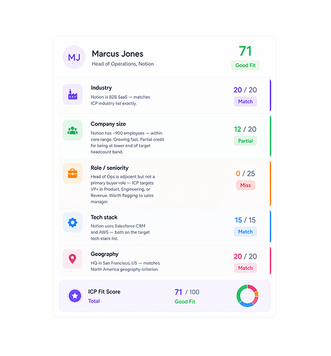 Once teams experience ICP fit scoring with detailed breakdowns, manual lead qualification feels like trying to solve calculus with finger painting and hope.