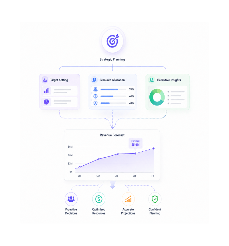 Generate comprehensive revenue forecasts that support strategic pipeline planning and informed business decisions. Enables proactive resource allocation and accurate targeting.