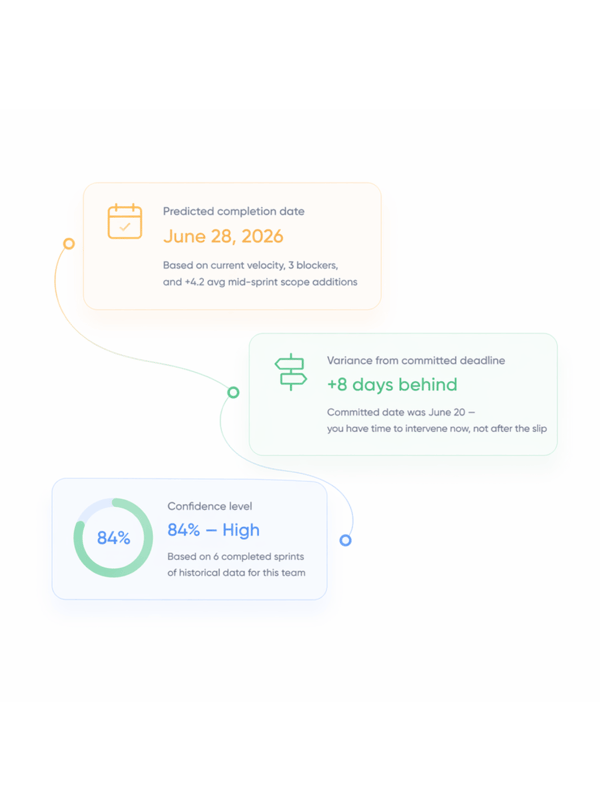 Not the date that was set at planning. Not the date your most optimistic team member believes. The date that your current velocity, blockers, and sprint history say will actually happen.