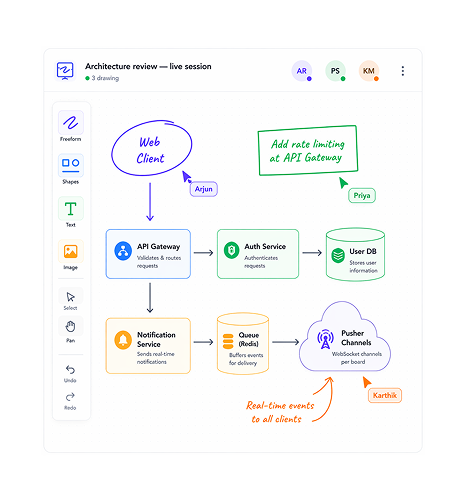 Engineering teams sketching system architecture and design teams annotating mockups both need the same thing: a canvas that lives next to the work it describes, not three tools away in a separate application.
