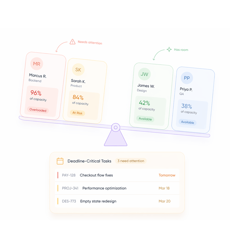 See your team's real capacity. Rebalance before it's too late.